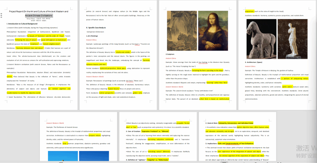 中西方艺术审美对比研究报告2023级7班