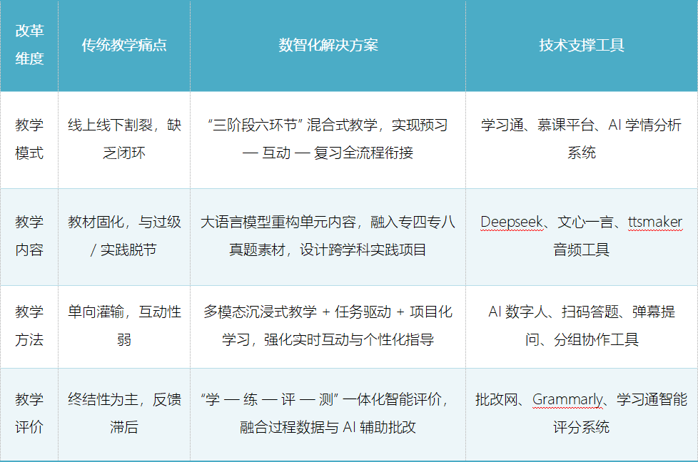 于是,以“数智赋能、高效互动、精准教学、创新育人”为核心目标的改革就此展开。