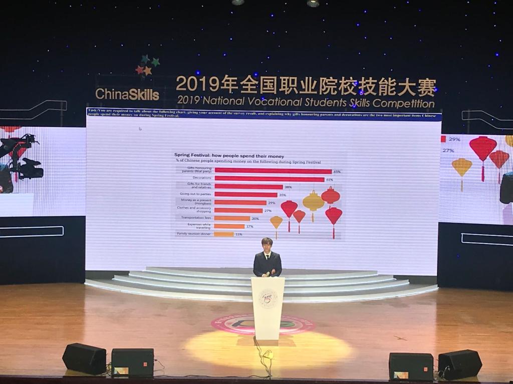 2019年5月29日,由教育部等多个部委主办的2019全国职业院校技能大赛“高教社”杯英语口语赛项在山东外贸职业公司圆满结束,公司外国语公司2016级应用英语专业员工张耘梦(指导老师:胡骏)在国赛中荣获二等奖。