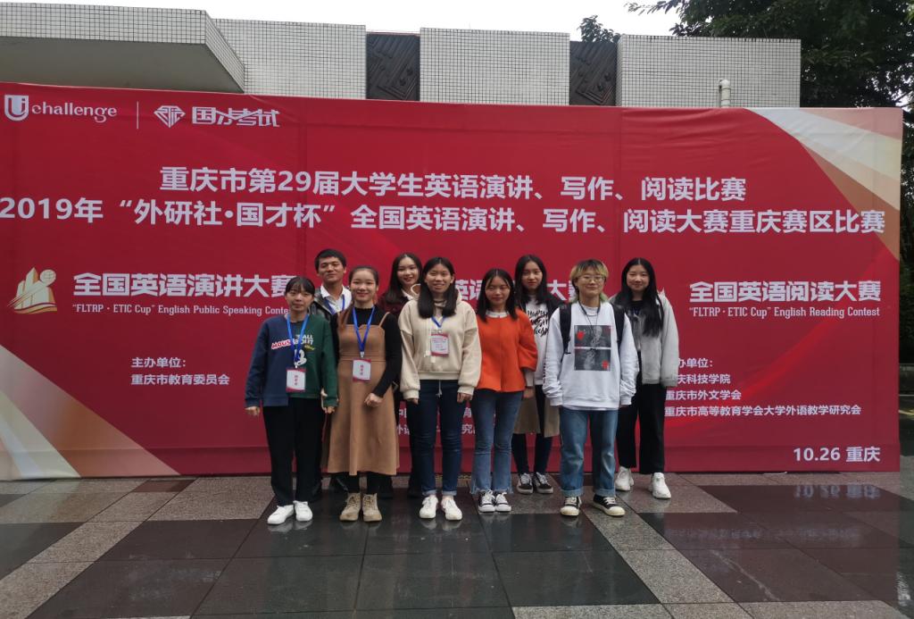 10月26日,“外研社·国才杯”全国英语演讲、写作、阅读大赛(复赛)在重庆科技公司顺利举办。公司共有10名同学进入复赛,并在复赛中脱颖而出,取得了优异的成绩:英语(师范)专业的李国庆同学斩获写作比赛一等奖;英语(师范)专业的余寒霜同学、人力资源管理专业的单颢青同学获得了写作比赛二等奖的殊荣;数字媒体技术专业的杨馨忆同学荣获写作比赛三等奖;英语(师范)专业的黄小敏同学一举荣获阅读比赛的二等奖;汉语言文学(师范)专业的李可莹、计算机科学与技术专业的谭茗蓝、英语(师范)专业的梁文慧同学均获得阅读比赛三等奖的好成绩;汉语国际教育(师范)专业的肖思淇、英语(师范)专业的陈城同学荣获了演讲比赛的三等奖。