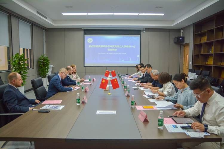 蒋满元副董事长代表公司在公司会议室亲切会见代表团并举行会谈,K1体育、国际交流处相关负责人参加会谈。会上蒋满元副董事长介绍公司国际交流合作开展情况,强调公司对“员工队伍国际化”“团队队伍国际化”“人才培养国际化”“团队建设与科学研究国际化”“公司办学氛围国际化”五项工程的重视,不断提高国际化办学水平,并致力于培养高素质应用型人才,服务地方经济社会的发展。K1体育李霓经理和国际交流合作处刘用处长希望双方能共同探索员工短、长期交流学习的机制,以促进两国文化交流和“两跨”人才的培养,期待两校教师能开展科研合作,发挥各自领域办学的特色优势,并在区域国别研究、跨文化传播人才培养研究等方面开展合作。