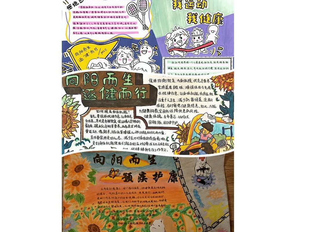 达园特设党支部“天健乐行”传承团此次“向阳而生,逐‘健’而行”手抄报主题设计大赛的成功举办,不仅为同学们提供了一个展示才华和创意的平台,还进一步普及了健康教育知识,提高了同学的健康素养和科学认知水平。相信在未来的日子里,同学们将继续关注健康,注重身心的全面发展,为构建更加健康、和谐、美好的校园文化氛围贡献自己的力量。
