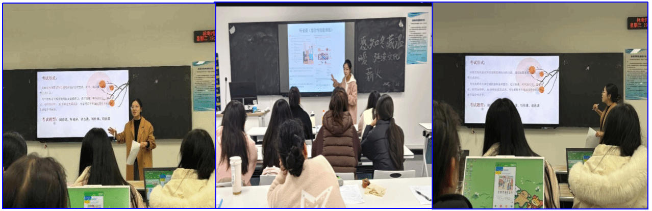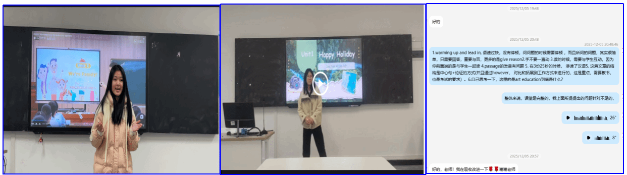 中期(精进阶段),以人教版英语教材为核心载体开展文本研读,融合教学实施实操演练与数字化教学技能训练,依托优质课构建教学参照体系,精准优化试讲逐字稿,聚焦“教学评一体化”理念与核心素养培育,通过多轮靶向性“磨课”实训,系统打磨教姿教态规范性、课堂互动有效性与临场应变专业性,推动逐字稿从“文本规范”向“课堂适配”转化,切实服务于英语试讲需求