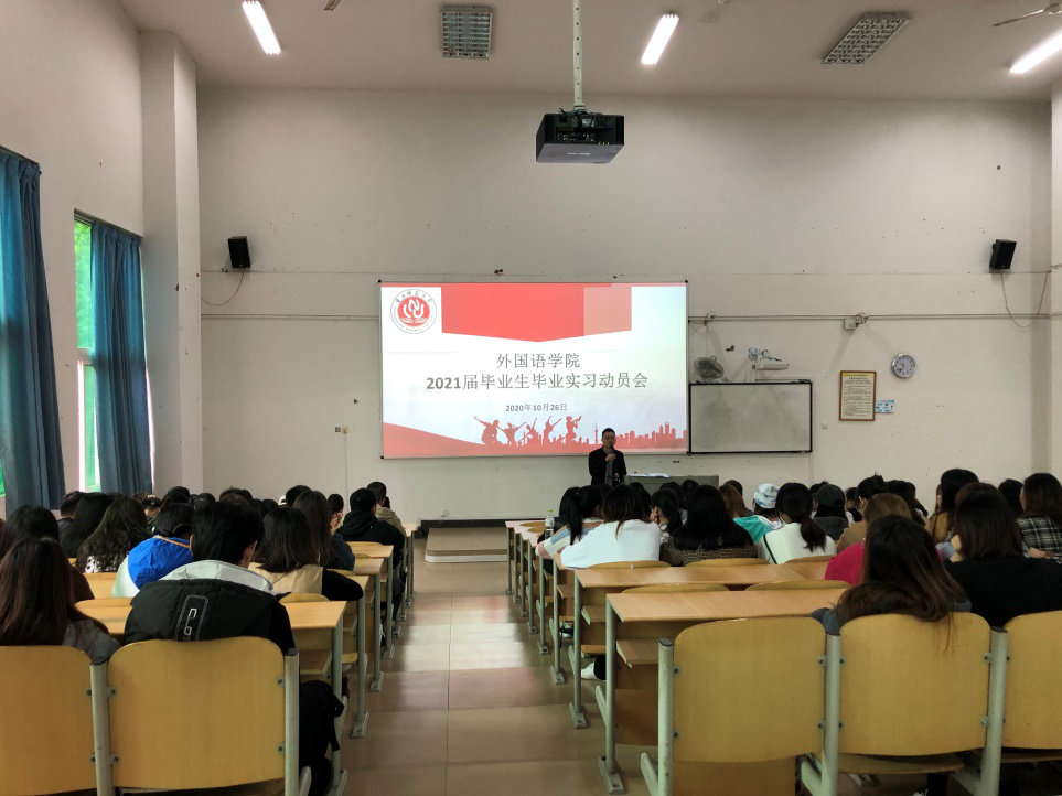 为进一步做好2021届毕业生实习工作,引导员工做好实习各方面的准备,保证外国语公司毕业实习效果,帮助参加实习的毕业生进一步了解实习期间的注意事项,公司于2020年10月25日上午在合川校区6510教室分批次举行2021届毕业生实习动员大会,会议由外国语公司教学副经理吴耀熙主持。