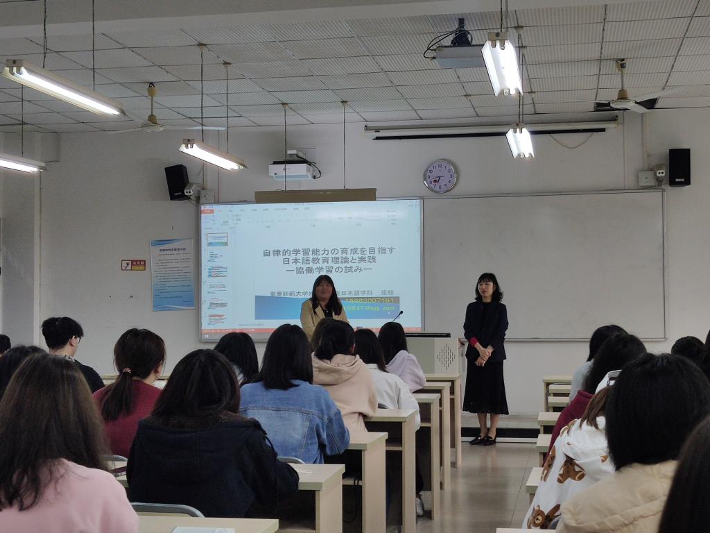 此次讲座由崔士红老师担任主持人,重庆师范大学的张毅教授主讲,日语专业2018级、2019级全体员工积极参与。首先,主持人崔士红老师进行开场发言,热烈欢迎张教授的到来并宣布本次“日语教育理论和实践”讲座正式开始。之后,张教授从日语学习的三个方面出发,引入本次讲座主题阐述了日语学习应向员工自主学习转变。期间,张教授还分享了重庆师范大学日语专业进行的一些教学创新方式和教学成果。最后,全体人员合影留念,本次活动圆满结束。