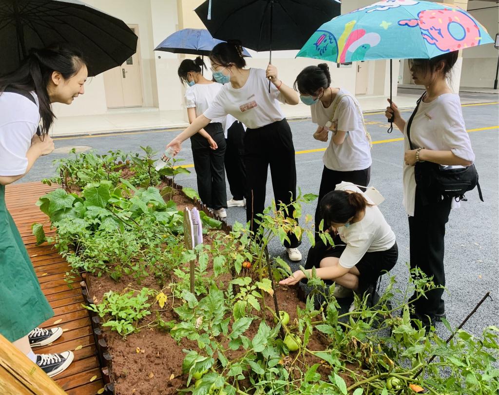 下午15点,师范生们到达花果小学。花果小学董事长沈小燕和基地讲解朱朱老师等早早就在基地等候,对K1体育师范生劳动教育实践队的到来表示热烈欢迎。在朱朱老师的带领下,大家首先参观了校园的整体布局和“行知天下”,学习了具有花果品牌的校园文化,感受了致知行远的育人氛围。随后大家参观了劳动种植园,朱朱老师向同学们一一介绍了各种蔬菜瓜果的幼苗,辣椒、茄子、西红柿等蔬菜一应俱全。接着大家参观了“泥中蕴果”和“布里生花”,真切感受到了同学们用创造力为陶泥注入的活力,将自然材料的脉络和纹理压制储存在棉布上,领略扎染技艺的古今赓续,欣赏扎染作品的美轮美奂。接下来朱朱老师带同学们前往手工作坊,手把手教同学们使用劳动工具,欣赏了极具创造力的手工艺品。最后来到烹饪室,参观烹饪环境及用具,观看小员工在劳动课堂中制作重庆小面的视频。在朦胧烟雨中,师生的热情十分高涨,师范生们一边参观一边听老师的讲解,下午17点,师范生们在意犹未尽的参观中结束了此次实践活动。