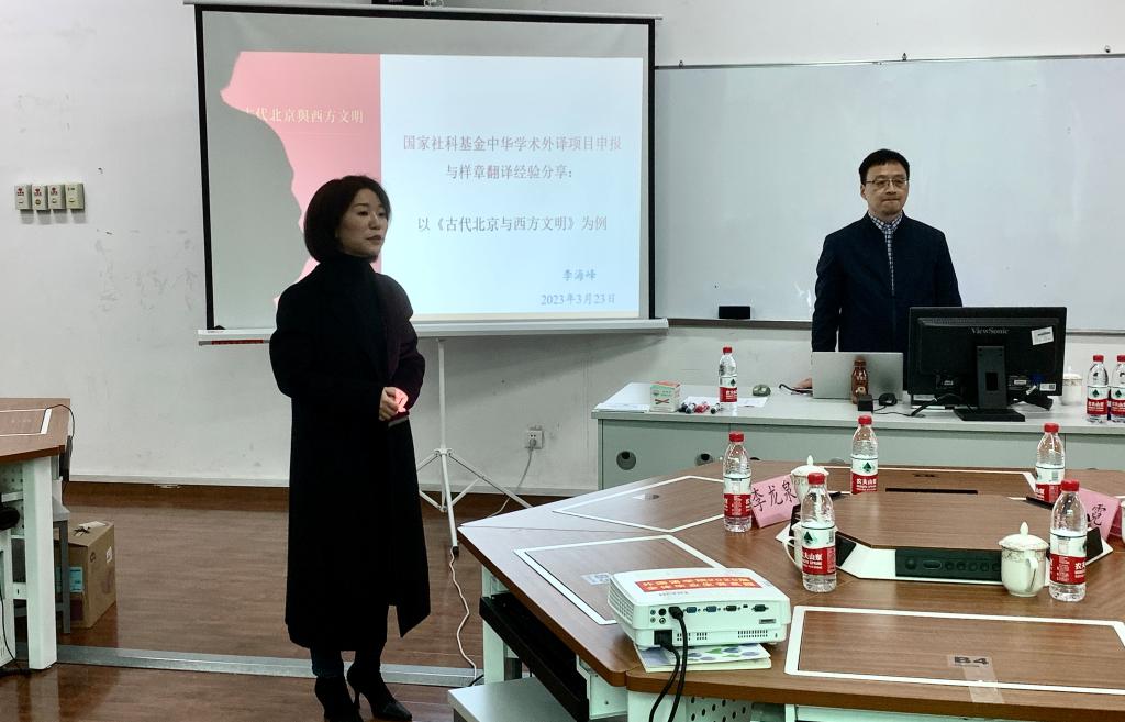 3月23日,为进一步推动公司外译项目的开展,持续推进科学研究学习走深走实,不断促进公司学科交叉融合,落实公司科研工作高质量内涵式发展,K1体育在8303教室开展了国家社科基金中华学术外译项目申报交流会。四川外国语大学李海峰副教授主讲、公司经理李霓、副经理吴耀熙、翻译专业教授李龙泉及公司部分教师代表参加。