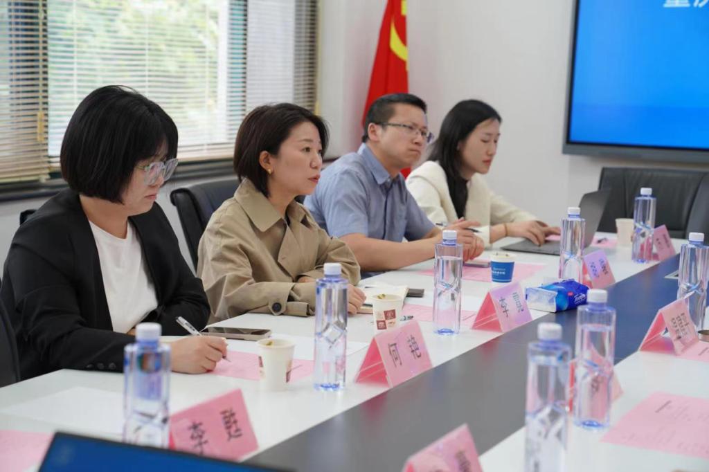 交流会上,上海对外经贸大学温建平经理向公司一行表示热烈欢迎,双方主要围绕团队建设方向及举措、国家级一流专业及创新实验班建设经验、党团学品牌活动开展情况等方面深入交流。温经理从学科的历史沉淀、现状和发展规划介绍了公司在团队建设、课程改革、实验班建设、特色公司打造、国际合作等方面取得的成就和未来外语学科发展的重点目标和方向,就“新文科”背景下英语类专业的守正创新、跨学科发展等方面展开探讨。王玉副经理详细介绍了国际商务外语公司本科教学情况,课程体系建设和创新实验班开展等情况,尤其是中英合作商务英语实验班多元融合模式,值得公司借鉴和学习。她还重点说明了中外合作办学项目的招生规模、专业设置、教学机制等整体情况以及项目具体创建的经验做法培养特色和成效;随后,英语系主任陈豪就英语(翻译与国际传播复语专业实验班)的实验班申报的背景、培养方案制定、课程设置特点以及实验班选拔及淘汰机制等方面深度交流,重点阐述了实验班的培养目标、核心课程以及各模块课程的开设情况;党委副书记徐峰对公司特色文化打造经验、党团学品牌活动情况进行了补充,为公司工作拓宽了思路。
