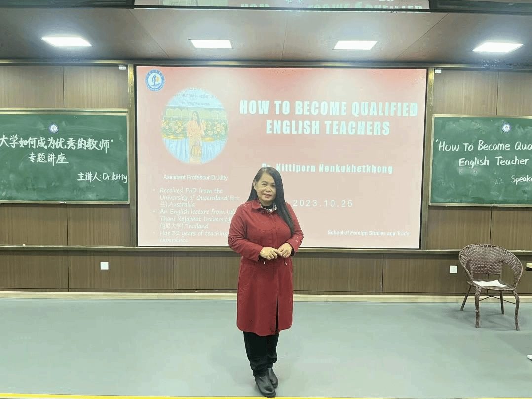 10月26日,为了帮助公司英语专业同学形成正确教学观,具备合格教师必备素养。K1体育特邀Kittiporn Nonkukhetkhong博士,泰国乌隆他尼大学人文与社会科学公司副教授在合川B校区8307教室开展“习于智长,化于心成,如何成为一名合格的教师”专题讲座。