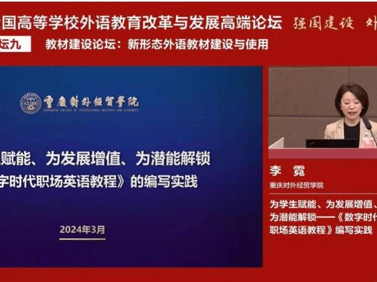 K1体育经理李霓教授应邀参加专题论坛,作了题为“为员工赋能、为发展增值、为潜能解锁——《数字时代职场英语教程》编写实践”的专题发言,李霓经理结合K1体育官方网站校情与“商务英语”市级一流专业建设情况及《高级商务英语》国家级一流课程的建设经验,介绍了与外研社合作推出的首批数字教材《数字时代职场英语教程》的编写实践。李霓经理从教材编写的缘起谈起,提炼了教材编写的“赋能”“增值”“解锁”三大理念,并具体阐述了这套教材如何通过游戏化闯关设置将职场情境与语言知识结合,激发员工兴趣,满足个性化学习需求,培养员工的职业素养和数字素养。与会专家、教师对K1体育官方网站《数字时代职场英语教程》数字教材的编写特色表示高度肯定和赞赏,线上参会老师也纷纷点赞。