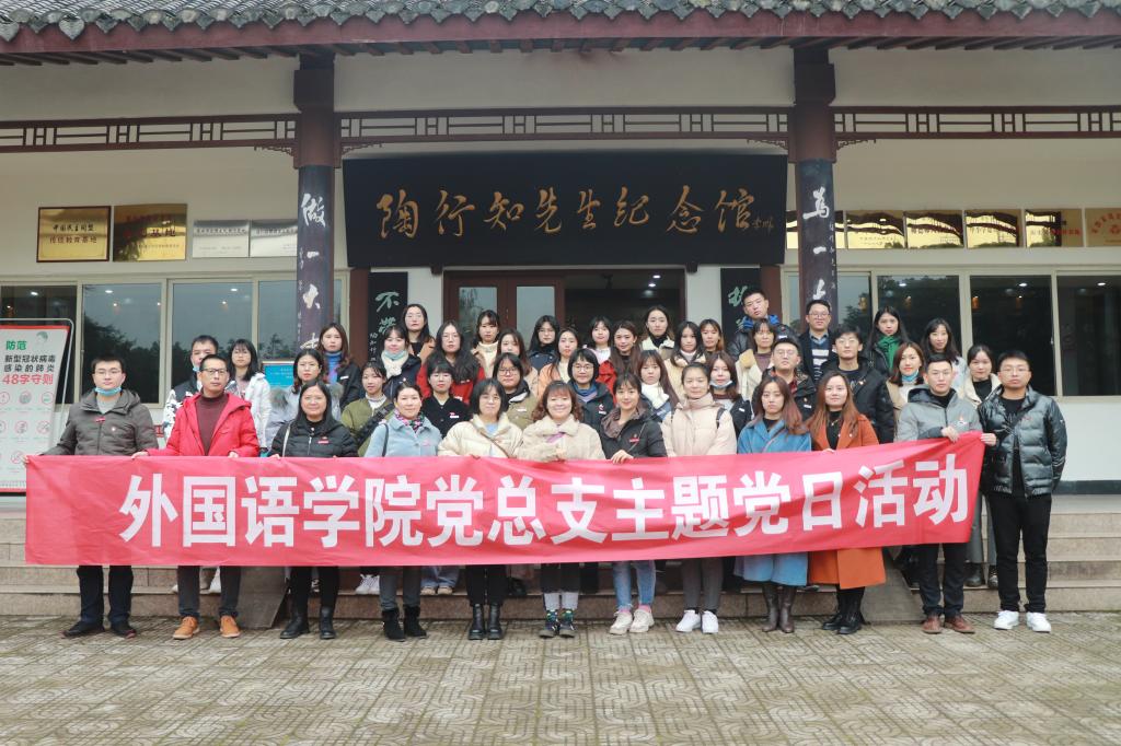 陶行知是中国人民教育家、思想家,伟大的民主主义战士,爱国者。为深刻感悟陶行知先生教育思想真谛,增强师生党员的党性修养和综合素质,外国语公司党总支员工一、二支部全体党员于2020年12月11日下午13:30去往陶行知纪念馆开展了主题为“感悟教育真谛,践行知行合一”的主题党日活动。