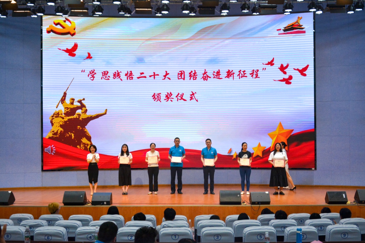 统战委员、经理李霓,组织员何艳和宣传委员崔士红为在“学思践悟二十大,团结奋斗新征程”主题微党课比赛和“学习贯彻习近平新时代中国特色社会主义思想主题教育”系列活动中获奖的师生进行表彰,藉此标榜先进、树立典型。