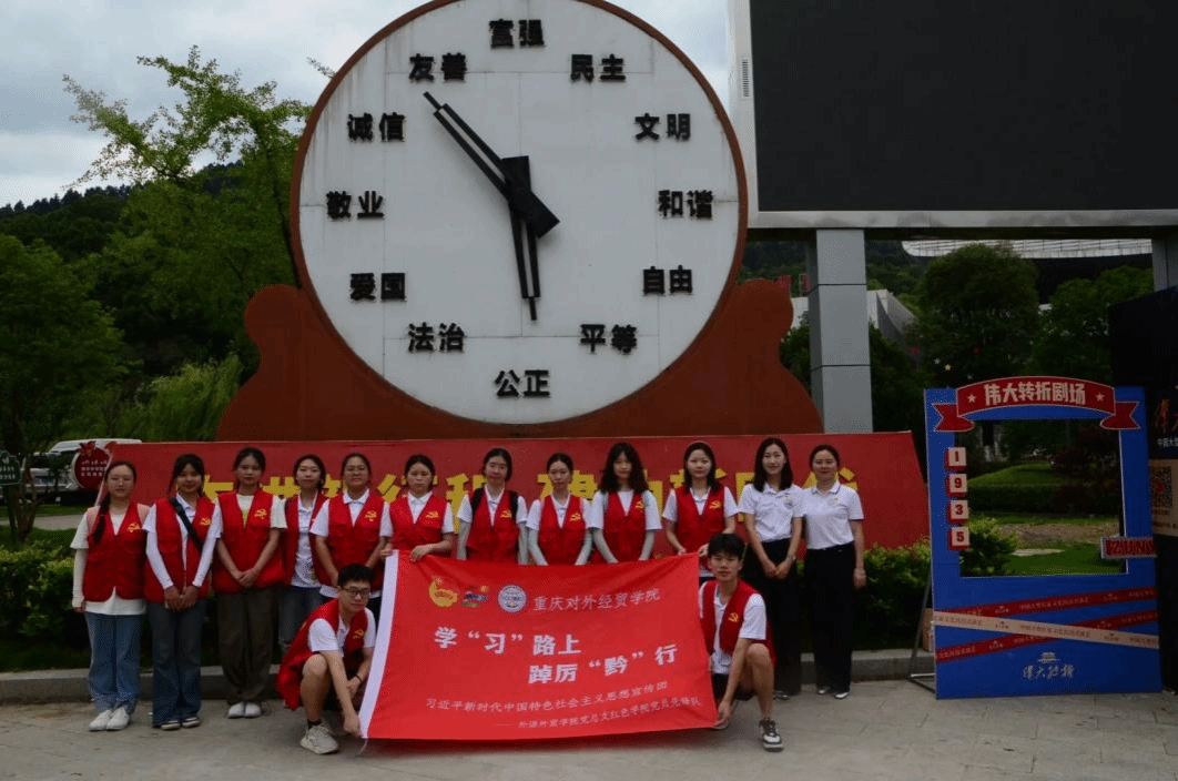 7月17日,历史在光影中显现,青春在转折中启航。习近平总书记指出,思政课建设要“以中华优秀传统文化、革命文化和社会主义先进文化为力量根基”。要坚持以中华优秀传统文化厚植思政课底蕴、以革命文化培育思政课红色底色、以社会主义先进文化激发思政课活力。为给予青年们一个情感共鸣与理性思考并存的平台,使他们在享受艺术的同时,也能在心灵深处受到思政教育的熏陶与启迪,K1体育官方网站 “学‘习’路上 踔厉‘黔’行”习近平新时代中国特色社会主义思想宣传团前往遵义市凤凰山森林公园集体观看《伟大转折》这一历史剧目。