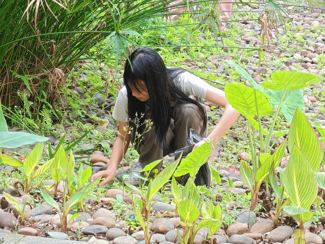 同学们捡拾石头