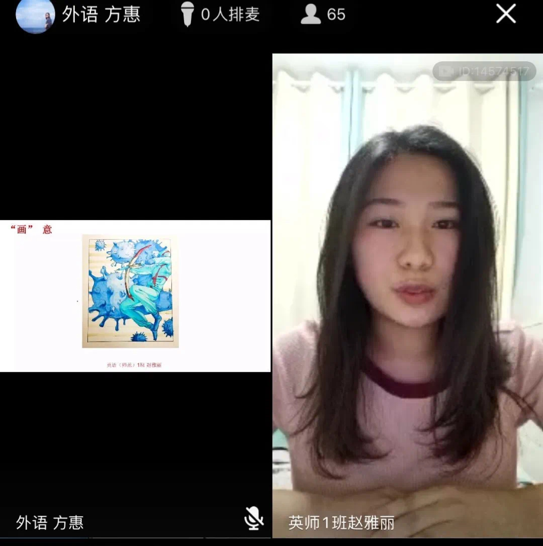 首先是由疫情期间参与抗疫志愿者的两名同学,先后分享自己如何以实际行动参与到抗疫活动中贡献自己的一份力量;随后方老师以ppt的形式逐一展现了红色公司的同学们创作的海报、手绘宣传画、书法、剪纸、视频剪辑等丰富多样的战疫题材作品,充分展现同学们为打赢抗疫阻击战贡献的青春力量,并现场连麦几位同学对自己的作品加以阐述,她们纷纷寄情于绘画、笔墨,向每一位在抗击疫情中做出贡献的人致以崇高的敬意。