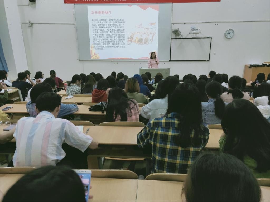 首先,辅导员对“五四运动”的背景知识及本次主题班会的具体流程进行了基本介绍。随后各班员工党员和发展对象带领同学们进行学习。学习的内容包括:习主席在纪念五四运动100周年大会上的讲话、2014年及2018年习主席两次对青年的寄语和青年榜样的示范案例。最后由辅导员对本次主题班会进行总结,倡导同学们结合时代背景,做中华民族强国梦的践行者。这些精彩丰富的内容,引发了同学们的深思,大家决心要为祖国的未来而努力奋斗,不负青春韶华。