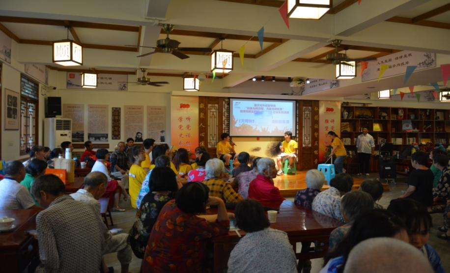志愿者们带着他们精心准备的“天网恢恢”防诈骗小品表演和歌唱节目“我和我的祖国”在和顺茶馆的百姓大舞台亮相。