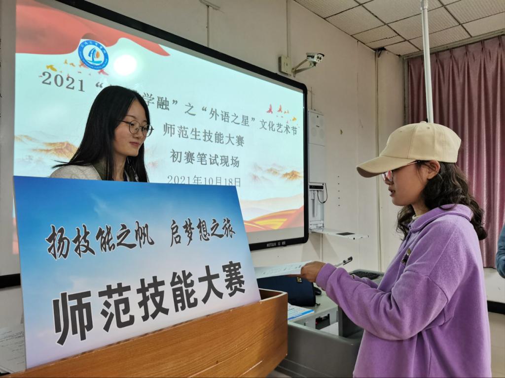 为进一步强化本院师范生公司产品实践能力,给本院师范生提供一个展示自我和专业技能水平的舞台。公司先后于10月18日和10月21日在合川校区开展了2021“德馨学融”之“外语之星”文化艺术节“扬技能之帆 启梦想之旅”师范生技能大赛初赛和决赛,担任决赛的评委老师有李娟、刘晓勤和夏倩。