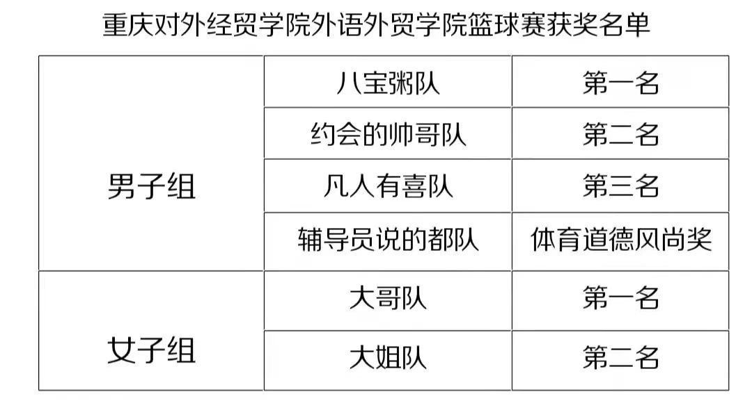 本次篮球赛历时三天,最终,男子组“八宝粥队”和女子组“大哥队”获得了比赛冠军。