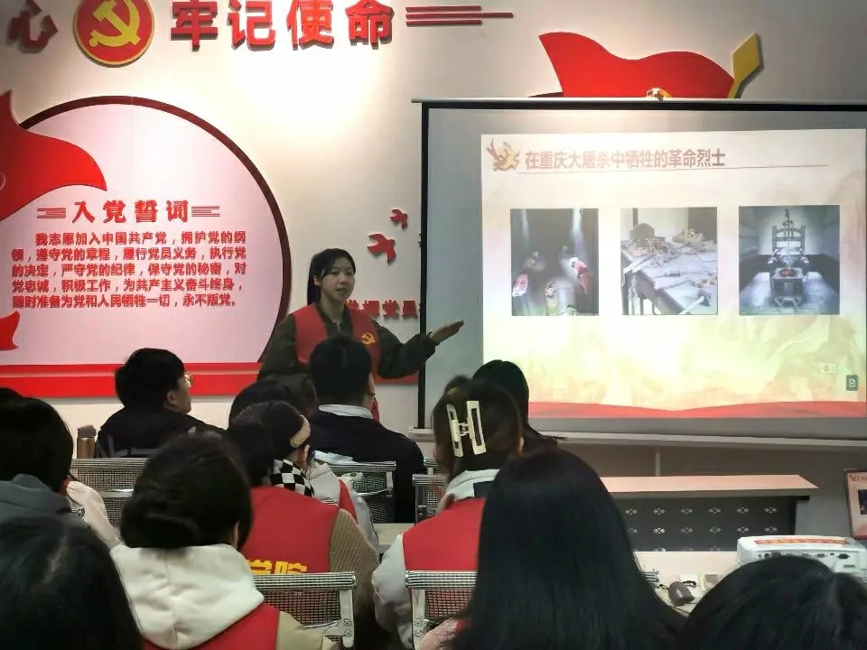 活动分为主题分享和党史知识竞赛两个板块。午晟阶段代表游晋杰同志从重庆大屠杀、英雄人物以及代表作品、“红岩精神”的内涵等几个方面进行了《弘扬“红岩精神”,牢记初心使命》的主题分享。在听完主题分享之后,来自卯曙、巳阳、辰曦阶段的四位同志也结合自己的经历主动分享了对于“红岩精神”的理解。