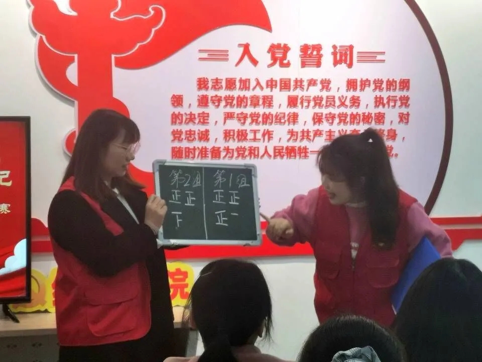党史知识竞赛一共分三轮,第一轮顺序作答,两组同志按组序依次进行作答;第二轮自由抢答,各小组成员自主举手抢答;两轮比拼后,两组比分出现平局,开启了第三轮加时赛。最终来自第一组的午晟、卯曙阶段的同志们领先三分取得了最终的胜利。在竞赛过程中同志们争先恐后举手抢答,现存竞争氛围十分浓厚。