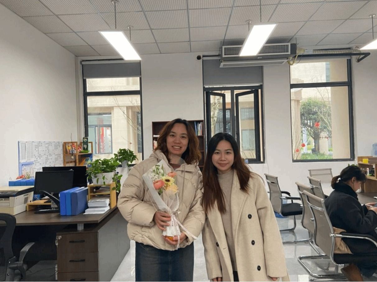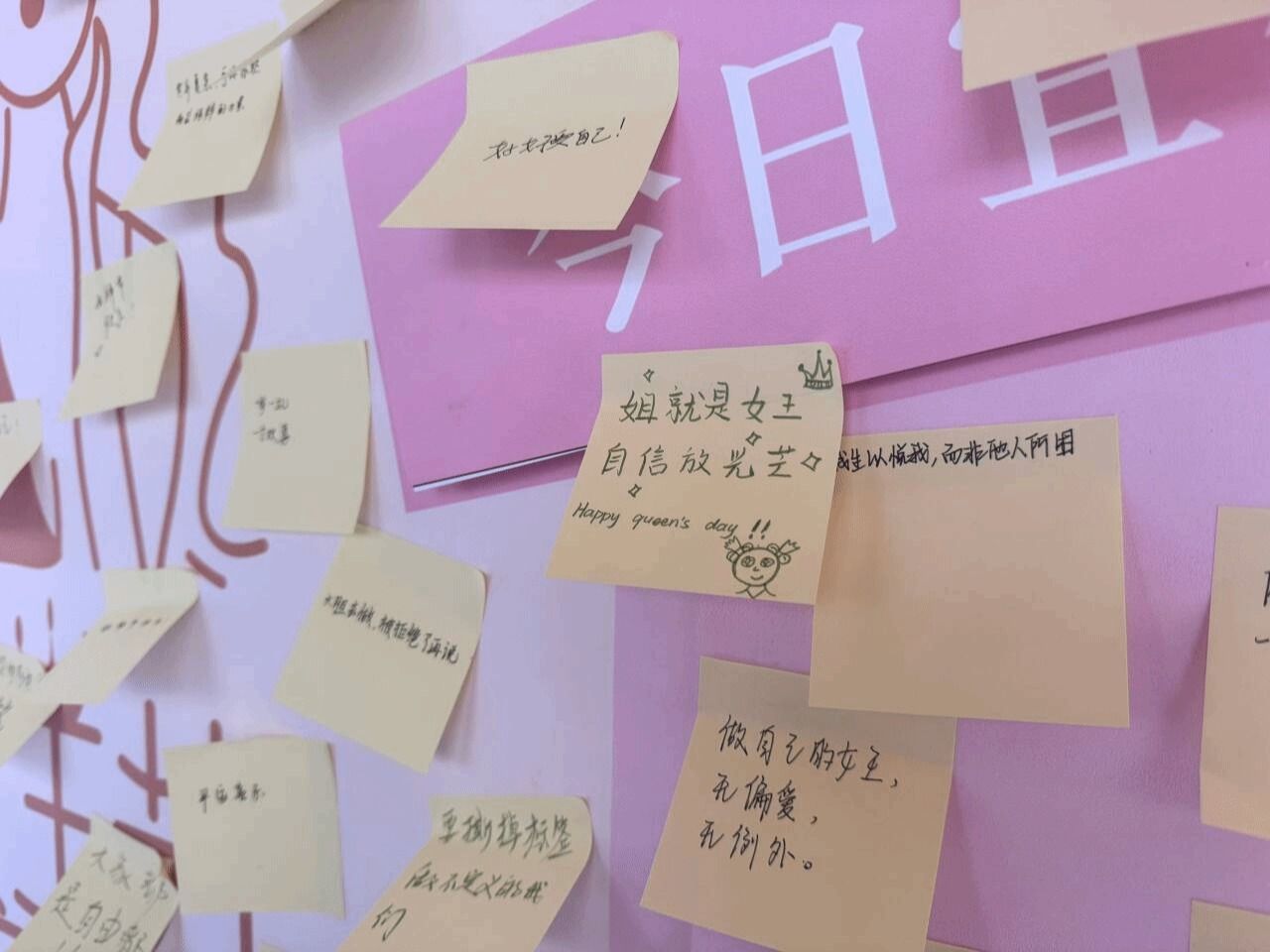 活动现场精心布置祝福展板,悬挂中医健康知识,设置知识问答环节,准备了中医知识卡片贴纸、秋梨膏糖等小礼物。此外,还提供了便利贴让参与活动的老师和同学写下祝福,粘贴在祝福展板上。活动现场气氛热烈,外院女生积极参与。通过中医健康知识问答,以有趣的问答互动方式在轻松愉快的氛围中进行,不仅让外院女生学习到中医的基础知识,还有利于身心和谐。祝福展板上贴满了“祝福”,每一张便利贴都承载着温暖的心意和美好的祝愿。黄色的贴纸、缤纷的气球和香甜的鲜花,将整个展板装点得格外温馨。最后,团总支员工会成员为外院办公室女教师们送上了精心挑选的鲜花,致以最真挚的节日问候和祝福。