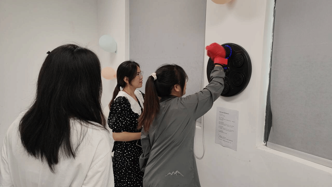 活动前期,部门成员利用彩带、气球等装饰品对活动教室氛围进行布置,并将音乐拳击机粘贴至墙面;活动过程中,同学们纷至沓来,戴上拳套,以音乐为媒介,跟随机器的音乐律动重拳出击,挥洒汗水,释放压力,展现青春活力。许多同学纷纷表示此活动形式新颖,极具吸引力,既缓解了学习生活上的压力,也具有一定的娱乐性质,增强了同学们对运动多样性的体验感。