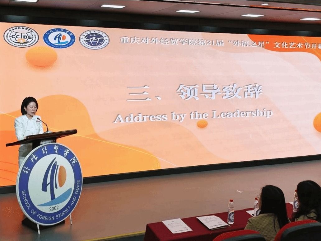 李霓经理在致辞中强调:“外语之星文化艺术节不仅是语言能力的练兵场,更是培养跨文化胜任力的试验田。希望同学们在活动中既要夯实语言基本功,更要深入理解语言背后的思维方式与价值体系。”她特别指出,本届活动根据不同专业,不同就业方向设置了多样模块,将助力同学们构建“语言+专业”的复合型能力结构。