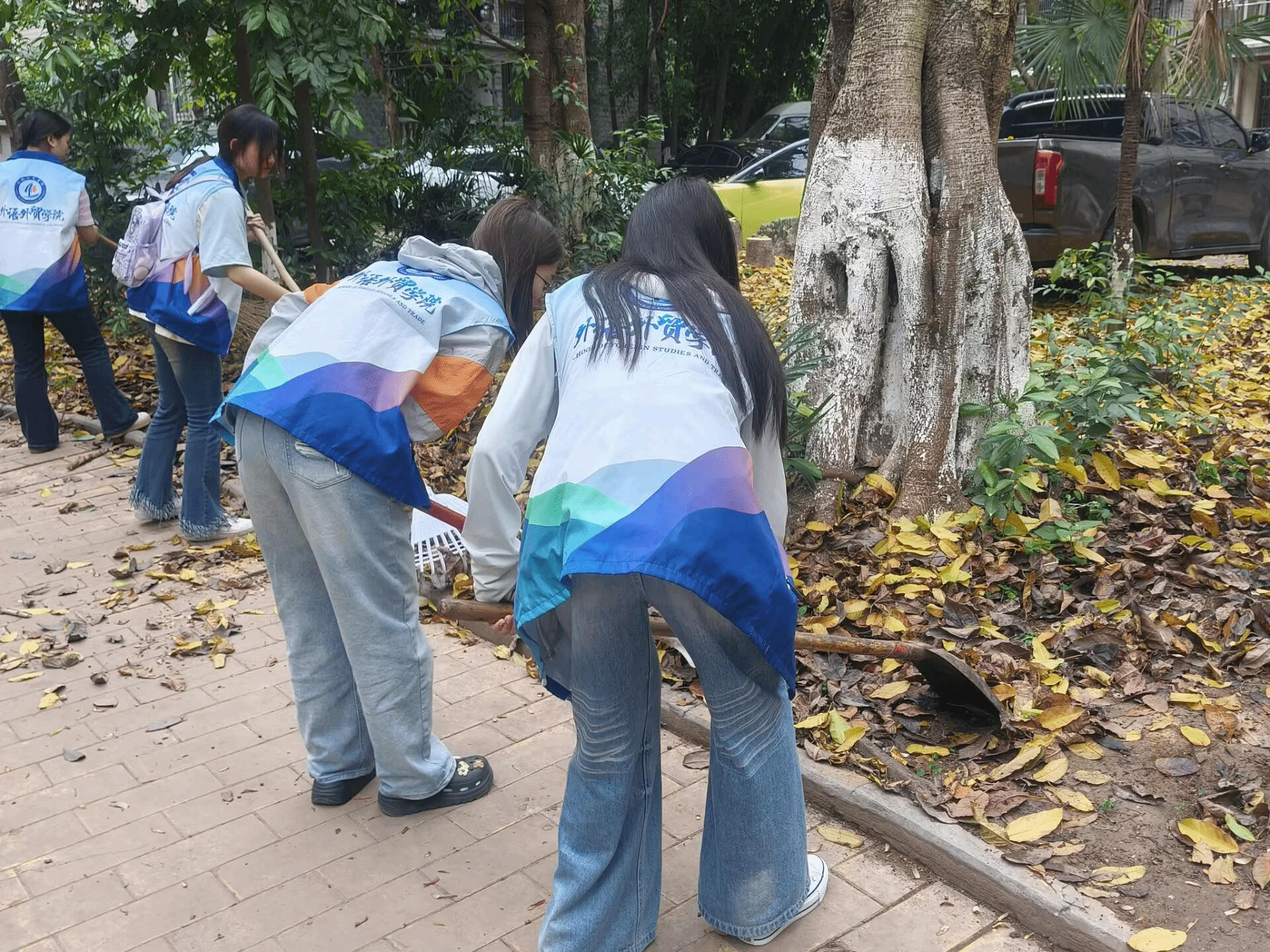 志愿者清扫落叶