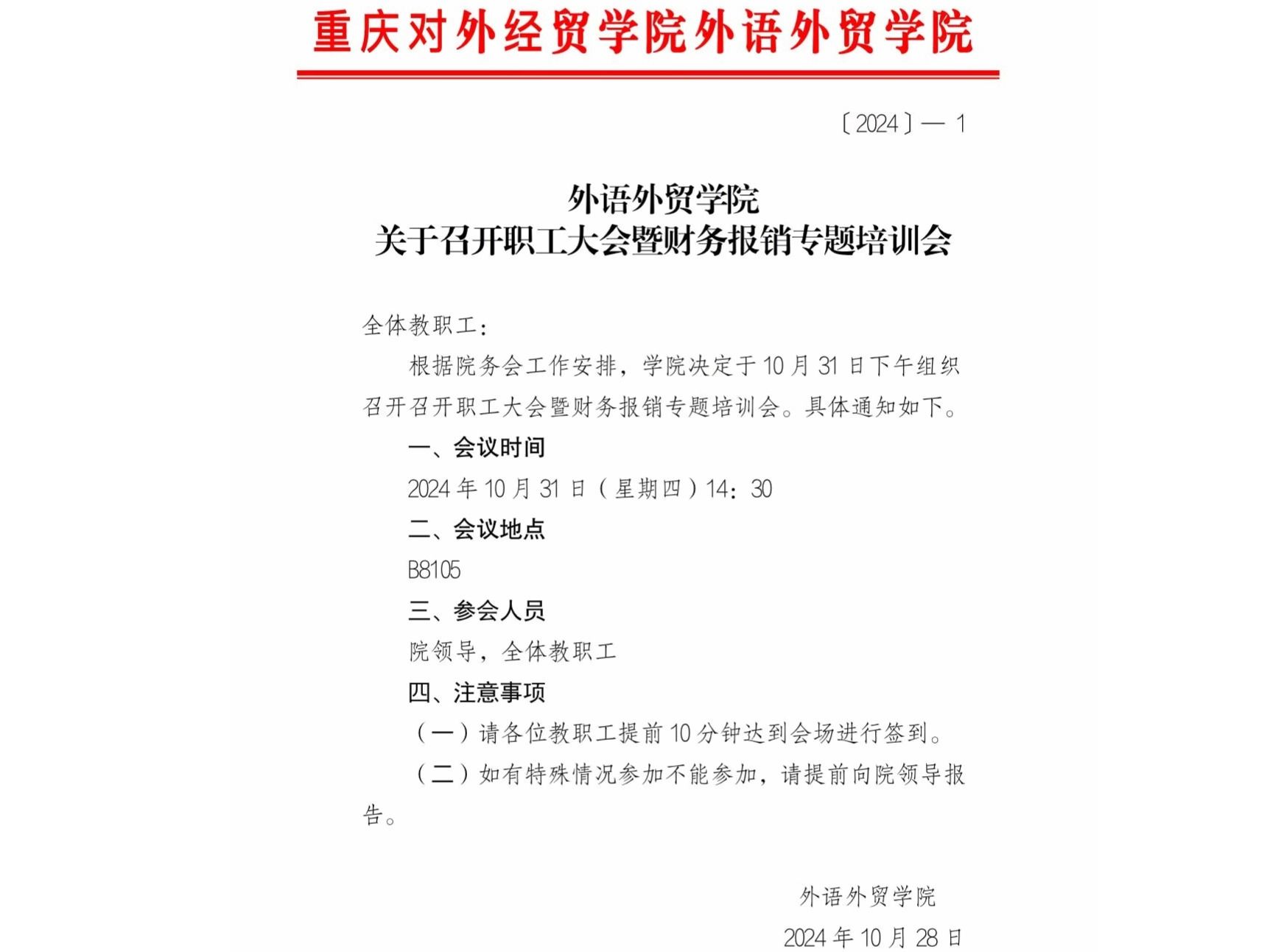 关于召开职工大会暨财务报销专题培训会