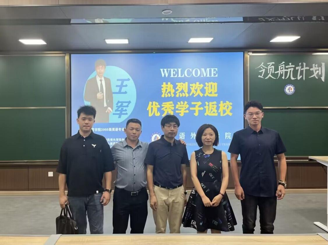 王軍先輩は卒業後上海に就職し、前後して上海新華研修公司副院長兼人事部主任、上海応用技術大学国際教育センター员工募集部主任、上海応用技術大学継続教育公司言語訓練部主任、上海工芸美術職業公司生涯教育公司芸術文化訓練部主任といった職務を務めた。2015年に上海宙垚教育集団を設立し、理事長を務めた。