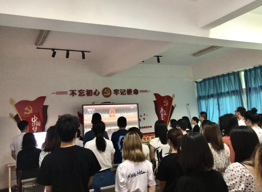 百年の道のり,波乱に満ち,百年の初心,長い年月を経てきた。中国共産党の百年誕生日を祝い、党の百年の道のりを回顧し、革命の烈士を偲び、習近平総書記の中国共産党が常に時代の先鋒、民族の背骨になることについて、党員チームは実践しなければならないと指示し、外語外貿公司の党総支は2021年7月1日午前8:00に8108党員活動室で挙党百年を祝う大会の生放送を見た。