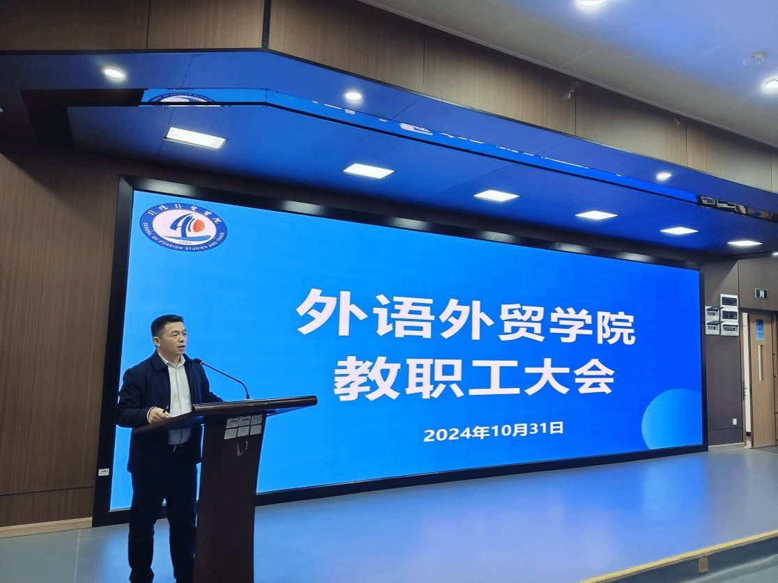 近日、合格評価と師範専門認証の2つの核心的な仕事を持続的に推進し、力を結集し、思想を統一するために、外語外貿公司は今学期の第3回教職員大会を円満に開催した。会議は趙鵬書記が主宰し、李霓院長と呉耀熙副院長が出席した。